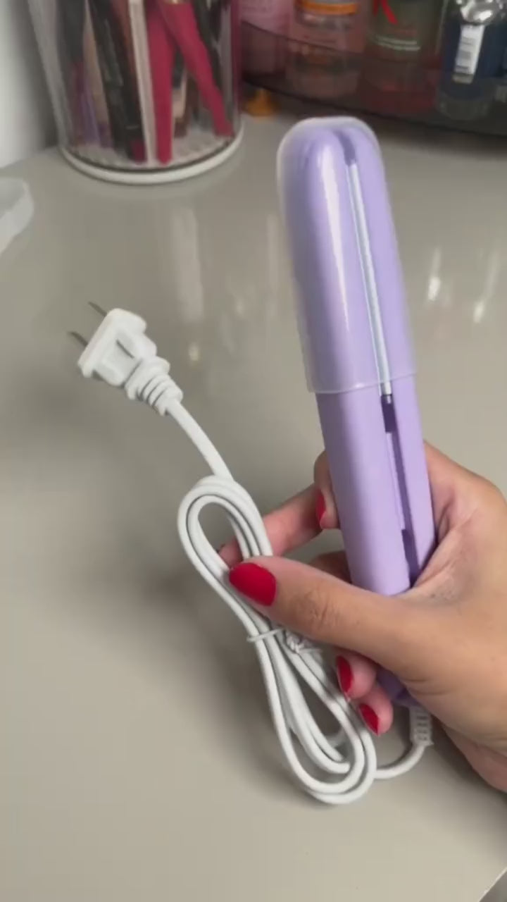 Meet our Mini Hair Straightener: the must-have tool for women who travel and won’t compromise on flawless hair. Enjoy the power and versatility of a professional device in a minimalist design, perfect for your toiletry bag. Freedom, style, and amazing results just a mini straightener away.
